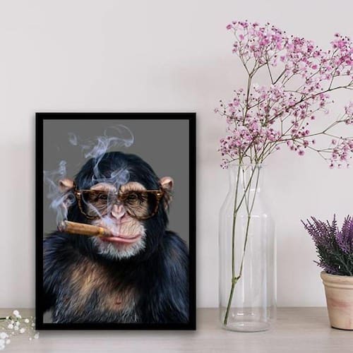 Quadro chipanzé hipster 33x24cm - com vidro Moldura: madeira preta Informações do produtoDecoração para quarto, sala, cozinha, escritório, área gourmet e muito mais. Chega de paredes vazias Medidas - cada peça tem 33x24cm a4 .Material do papel - papel fotográfico brilhante de altíssima resolução acabamento - todos os quadros são acompanhados de vidro para proteção da imagem. - moldura em madeira maciça e pendurador . - os quadros são embalados de forma segura com plástico bolha com camada dupla de acordo com o tamanho dos quadros. Garantia - garantia de 3 meses. Meu quadro chegou. Como posso fixá-lo Você precisa apenas de um martelo e um prego, pois os quadros já vão acompanhados de penduradores. Esta é a forma mais indicada. Como posso limpar meu quadro A limpeza é feita como um móvel comum da sua casa. Apenas um pano seco ou espanador são suficientes para tal