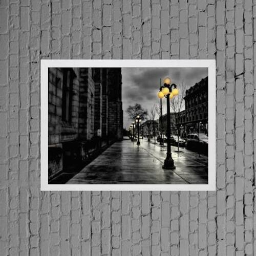 Quadro Cidade Com Poste Iluminado 24X18Cm Moldura Branca