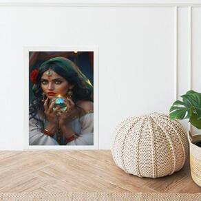 Quadro cigana com bola de cristal 33x24cm Moldura: madeira preta Informações do produto tire todas as suas dúvidas no descritivo abaixo: decoração para quarto, sala, cozinha, escritório, área gourmet e muito mais. Chega de paredes vazias medidas - cada peça tem 33x24cm a4 . Material do papel - papel fotográfico brilhante de altíssima resolução acabamento - todos os quadros são acompanhados de uma película de acetato para proteção da imagem. - os quadros são embalados de forma segura com plástico bolha com camada dupla de acordo com o tamanho dos quadros. Garantia - garantia de 3 meses. Meu quadro chegou. Como posso fixá-lo Você precisa apenas de um martelo e um prego, pois os quadros já vão acompanhados de penduradores. Esta é a forma mais indicada. Caso prefira, você pode utilizar uma fita dupla face neste caso, sugerimos de alta qualidade para evitar que descole e seu quadro caia . Como posso limpar meu quadro A limpeza é feita como um móvel comum da sua casa. Apenas um pano seco ou espanador são suficientes para tal