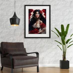Quadro cigana rosa vermelha - 60x48cm Moldura: madeira preta Informações do produto tire todas as suas dúvidas no descritivo abaixo: decoração para quarto, sala, cozinha, escritório, área gourmet e muito mais. Chega de paredes vazias medidas - cada peça tem 60x48cm . Material do papel - papel fotográfico brilhante de altíssima resolução acabamento - todos os quadros são acompanhados de vidro para proteção da imagem. - moldura em madeira maciça na cor preta ou branca conforme produto escolhido e pendurador. - paspatur branco com 7cm de largura - os quadros são embalados de forma segura com plástico bolha com camada dupla de acordo com o tamanho dos quadros. Garantia - garantia de 3 meses. Meu quadro chegou. Como posso fixá-lo Você precisa apenas de um martelo e um prego, pois os quadros já vão acompanhados de penduradores. Esta é a forma mais indicada. Como posso limpar meu quadro A limpeza é feita como um móvel comum da sua casa. Apenas um pano seco ou espanador são suficientes para tal Ean: 7890911938447