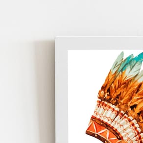 Quadro Cocar Indígena Penas Coloridas Moldura Branca 60X40Cm