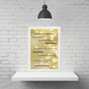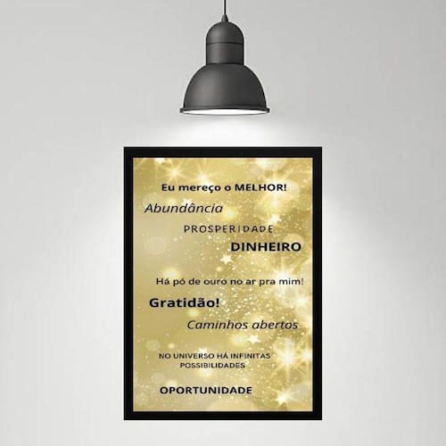Quadro cocriação lei da atração - eu mereço 45x34cm - com vidro Moldura: madeira preta Informações do produto tire todas as suas dúvidas no descritivo abaixo: decoração para quarto, sala, cozinha, escritório, área gourmet e muito mais. Chega de paredes vazias medidas - cada peça tem 45x34cm a3 . Material do papel - papel fotográfico brilhante de altíssima resolução acabamento - todos os quadros são acompanhados de vidro para proteção da imagem. - moldura em madeira maciça na cor preta ou branca conforme produto escolhido e pendurador . - os quadros são embalados de forma segura com plástico bolha com camada dupla de acordo com o tamanho dos quadros. Garantia - garantia de 3 meses. Meu quadro chegou. Como posso fixá-lo Você precisa apenas de um martelo e um prego, pois os quadros já vão acompanhados de penduradores. Esta é a forma mais indicada. Como posso limpar meu quadro A limpeza é feita como um móvel comum da sua casa. Apenas um pano seco ou espanador são suficientes para tal