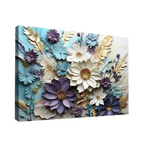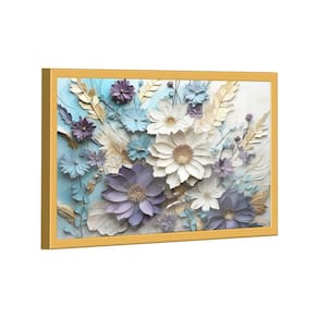 Quadro Colagem de Flores -- BR ARTES Moldura Dourada - Ultra Grande 150x100 -
