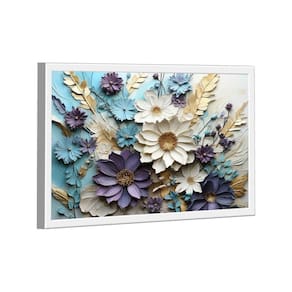 Quadro Colagem de Flores -- BR ARTES Moldura Branca e Vidro - Médio 84x54 -