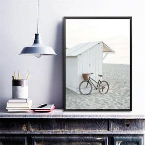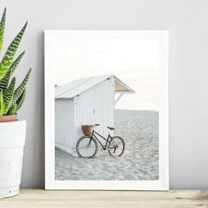 Quadro coleção praia soft - bicicleta 33x24cm - com vidro Moldura: madeira preta Informações do produto tire todas as suas dúvidas no descritivo abaixo: decoração para quarto, sala, cozinha, escritório, área gourmet e muito mais. Chega de paredes vazias medidas - cada peça tem 33x24cm a4 . Material do papel - papel fotográfico brilhante de altíssima resolução acabamento - todos os quadros são acompanhados de vidro para proteção da imagem. - moldura em madeira maciça na cor preta ou branca conforme produto escolhido e pendurador . - os quadros são embalados de forma segura com plástico bolha com camada dupla de acordo com o tamanho dos quadros. Garantia - garantia de 3 meses. Meu quadro chegou. Como posso fixá-lo Você precisa apenas de um martelo e um prego, pois os quadros já vão acompanhados de penduradores. Esta é a forma mais indicada. Como posso limpar meu quadro A limpeza é feita como um móvel comum da sua casa. Apenas um pano seco ou espanador são suficientes para tal
