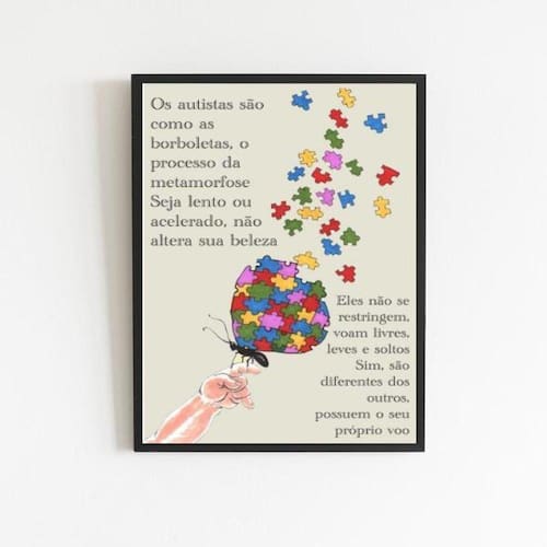 Quadro conscientização do autismo 33x24cm - com vidro Moldura: madeira preta