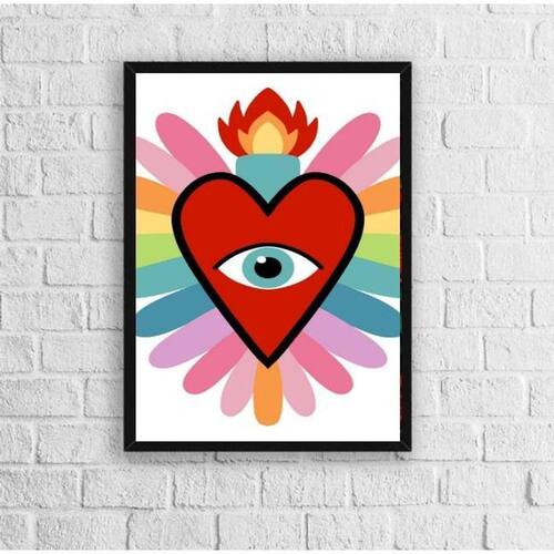 Quadro Coração Olho 33x24cm - Moldura Branca