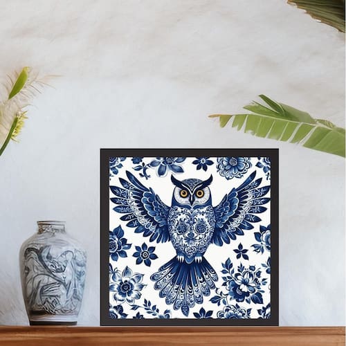 Quadro coruja floral estilo azulejo português - 33x33cm Cor: moldura preta Informações do produto tire todas as suas dúvidas no descritivo abaixo: decoração para quarto, sala, cozinha, escritório, área gourmet e muito mais. Chega de paredes vazias medidas - cada peça tem 33x33cm. Material do papel - papel fotográfico brilhante de altíssima resolução acabamento - todos os quadros são acompanhados de uma película de acetato para proteção da imagem. - os quadros são embalados de forma segura com plástico bolha com camada dupla de acordo com o tamanho dos quadros. - de 3 meses. Meu quadro chegou. Como posso fixá-lo Você precisa apenas de um martelo e um prego, pois os quadros já vão acompanhados de penduradores. Esta é a forma mais indicada. Caso prefira, você pode utilizar uma fita dupla face neste caso, sugerimos de alta qualidade para evitar que descole e seu quadro caia . Como posso limpar meu quadro A limpeza é feita como um móvel comum da sua casa. Apenas um pano seco ou espanador são suficientes para tal Marca: Não Informado Ean: 7901039763368