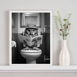 Quadro coruja no banheiro lendo jornal 24x18cm Moldura: madeira preta Informações do produto tire todas as suas dúvidas no descritivo abaixo: decoração para quarto, sala, cozinha, escritório, área gourmet e muito mais. Chega de paredes vazias medidas - cada peça tem 24x18cm a5 . Material do papel - papel fotográfico brilhante de altíssima resolução acabamento - todos os quadros são acompanhados de uma película de acetato para proteção da imagem. - os quadros são embalados de forma segura com plástico bolha com camada dupla de acordo com o tamanho dos quadros. Garantia - garantia de 3 meses. Meu quadro chegou. Como posso fixá-lo Você precisa apenas de um martelo e um prego, pois os quadros já vão acompanhados de penduradores. Esta é a forma mais indicada. Caso prefira, você pode utilizar uma fita dupla face neste caso, sugerimos de alta qualidade para evitar que descole e seu quadro caia . Como posso limpar meu quadro A limpeza é feita como um móvel comum da sua casa. Apenas um pano seco ou espanador são suficientes para tal Ean: 7892370378864