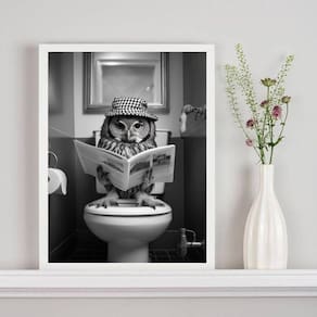 Quadro coruja no banheiro lendo jornal 24x18cm Moldura: madeira branca Informações do produto tire todas as suas dúvidas no descritivo abaixo: decoração para quarto, sala, cozinha, escritório, área gourmet e muito mais. Chega de paredes vazias medidas - cada peça tem 24x18cm a5 . Material do papel - papel fotográfico brilhante de altíssima resolução acabamento - todos os quadros são acompanhados de uma película de acetato para proteção da imagem. - os quadros são embalados de forma segura com plástico bolha com camada dupla de acordo com o tamanho dos quadros. Garantia - garantia de 3 meses. Meu quadro chegou. Como posso fixá-lo Você precisa apenas de um martelo e um prego, pois os quadros já vão acompanhados de penduradores. Esta é a forma mais indicada. Caso prefira, você pode utilizar uma fita dupla face neste caso, sugerimos de alta qualidade para evitar que descole e seu quadro caia . Como posso limpar meu quadro A limpeza é feita como um móvel comum da sua casa. Apenas um pano seco ou espanador são suficientes para tal Ean: 7893856430793