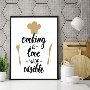 Quadro cozinha - cozinhar é amor 45x34cm - com vidro Moldura: madeira branca Informações do produto tire todas as suas dúvidas no descritivo abaixo: decoração para quarto, sala, cozinha, escritório, área gourmet e muito mais. Chega de paredes vazias medidas - cada peça tem 45x34cm a3 . Material do papel - papel fotográfico brilhante de altíssima resolução acabamento - todos os quadros são acompanhados de vidro para proteção da imagem. - moldura em madeira maciça na cor preta ou branca conforme produto escolhido e pendurador . - os quadros são embalados de forma segura com plástico bolha com camada dupla de acordo com o tamanho dos quadros. Garantia - garantia de 3 meses. Meu quadro chegou. Como posso fixá-lo Você precisa apenas de um martelo e um prego, pois os quadros já vão acompanhados de penduradores. Esta é a forma mais indicada. Como posso limpar meu quadro A limpeza é feita como um móvel comum da sua casa. Apenas um pano seco ou espanador são suficientes para tal