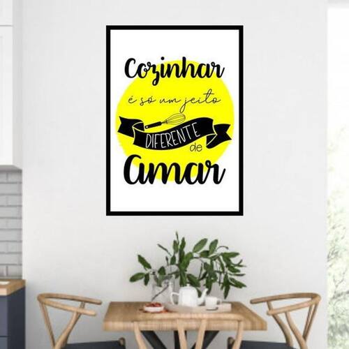 Quadro cozinhar: um jeito diferente de amar 33x24cm - com vidro Moldura: madeira preta Informações do produto tire todas as suas dúvidas no descritivo abaixo: decoração para quarto, sala, cozinha, escritório, área gourmet e muito mais. Chega de paredes vazias medidas - cada peça tem 33x24cm a4 . Material do papel - papel fotográfico brilhante de altíssima resolução acabamento - todos os quadros são acompanhados de vidro para proteção da imagem. - moldura em madeira maciça na cor preta e pendurador . - os quadros são embalados de forma segura com plástico bolha com camada dupla de acordo com o tamanho dos quadros. - de 3 meses. Meu quadro chegou. Como posso fixá-lo Você precisa apenas de um martelo e um prego, pois os quadros já vão acompanhados de penduradores. Esta é a forma mais indicada. Como posso limpar meu quadro A limpeza é feita como um móvel comum da sua casa. Apenas um pano seco ou espanador são suficientes para tal Marca: Não Informado