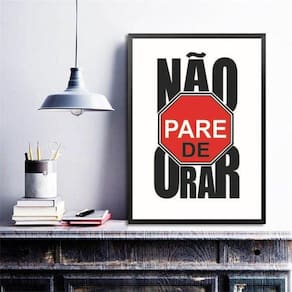 Quadro cristão - não pare de orar 33x24cm Moldura: madeira branca Informações do produto tire todas as suas dúvidas no descritivo abaixo: decoração para quarto, sala, cozinha, escritório, área gourmet e muito mais. Chega de paredes vazias medidas - cada peça tem 33x24cm a4 . Material do papel - papel fotográfico brilhante de altíssima resolução acabamento - todos os quadros são acompanhados de uma película de acetato para proteção da imagem. - os quadros são embalados de forma segura com plástico bolha com camada dupla de acordo com o tamanho dos quadros. Garantia - garantia de 3 meses. Meu quadro chegou. Como posso fixá-lo Você precisa apenas de um martelo e um prego, pois os quadros já vão acompanhados de penduradores. Esta é a forma mais indicada. Caso prefira, você pode utilizar uma fita dupla face neste caso, sugerimos de alta qualidade para evitar que descole e seu quadro caia . Como posso limpar meu quadro A limpeza é feita como um móvel comum da sua casa. Apenas um pano seco ou espanador são suficientes para tal