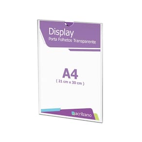 Envio de imediato após a confirmação do pedido Modelo simples de parede sem o filete espaçador nas laterais e sem fundo. Acomoda apenas 1 unidade da folha a4, onde a base é a própria parede ou porta, todas as unidades com fita dupla face de alta fixação. O produto não tem os filete espaçador nas laterais e que a fita dupla face é direto no acrílico, modelo sem o filete espaçador. Fita dupla face de alta fixação colada diretamente na placa a4. Display de parede porta folha a4 vertical Suporte de papel para porta folha e folheto a4 é o produto ideal para exposição de cartazes, anúncios, comunicados, certificados, alvarás, licenças, suportes para notificações, ofertas e qualquer tipo de comunicação entre você e seus clientes ou funcionários. Onde utilizar seu display Nossos displays são perfeitos para uso interno e possuem excelente durabilidade e visibilidade do cartaz ou folheto aplicado. O display transparente torna-se a opção mais viável para fazer divulgações de anúncios e avisos por sua praticidade. Seja público interno ou clientes as informações precisam estar bem posicionadas para melhor visibilidade, e com nosso display de parede você conseguirá isso facilmente. Características: - peça fabricada com corte a laser. - não amarela com o tempo. - excelente resistência e durabilidade. - fita dupla face nas bordas laterais para fixação. Informação de uso e instalação: Use pano úmido na superfície onde o display será colocado, tire a proteção verde da fita dupla face, cole o produto na superfície. O produto pode ser e fixado no formato vertical ou horizontal. A peça é a mesma, se quiser usa-la no formato vertical e só instalar e fixar ela na parede ou na porta em pé ou se quiser usa-la no formato horizontal e só instalar e fixar ela na parede ou na porta deitado. Dados técnicos: Modelo: display de parede com fita dupla face Tamanho: porta folha a4 Material: acrilico Uso: vertical ou horizontal. Tamanho: Largura: 22 centímetros. Altura: 32 centímetros. A acrilzano, fábrica de acrílico com mais de 26 anos no mercado, prioriza transmitir a individualidade em suas peças acrílicas aliada a altos critérios de qualidade. Cuidados com os produtos acrilzano: A limpeza deve ser feita sempre com um pano macio ou flanela a fim prolongar a vida útil do material. Não usar esponjas ou materiais de fricção. Enviamos para todo brasil com embalagem resistente e segura. Marca: Não Informado