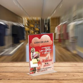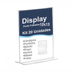 Fixação por fita dupla face. já acompanha tamanho: 10 x 15cm Modelo: retrato Material: ps cristal Quantidade de produtos nesse kit: -20 unidades. O que você pode expor nesse display: - identificador de mesa - cardápio - fotos. - papel e folha em geral. - aviso. - propaganda. - lembrete. - comunicação interna e externa na empresa. - qualquer tipo de divulgação que você queira expor. Características: - peça fabricada com corte a laser. - não amarela com o tempo. - excelente resistência e durabilidade. Capacidade: 1 folha ou papel