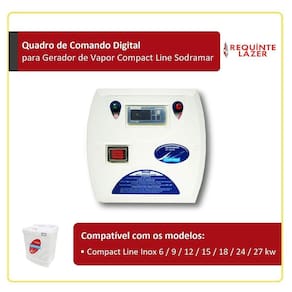 Compatível com o Gerador de Vapor Compact Line Inox Sodramar, acompanha bulbo sensor (que possui a finalidade de registrar a temperatura do ambiente e assim controlá-la automaticamente) e tampa de acabamento para proteção do sensor. O quadro de comando é fabricado em polietileno e deve ser fixado ou concretado na parte externa do cômodo de sauna, numa altura aproximada de 1,60 m.