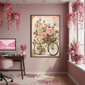 Quadro Decor Bicicleta Vintage Floral 70x50cm Mold Preta