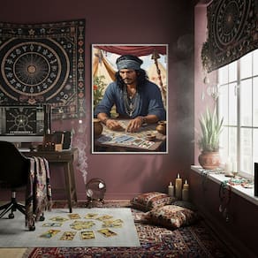Quadro Decor Homem Cigano Lendo Tarot 70x50cm Mold Branca