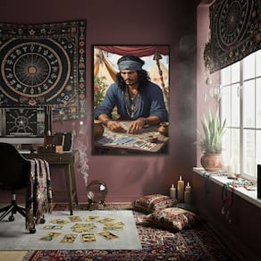 Quadro Decor Homem Cigano Lendo Tarot 70x50cm Mold Preta