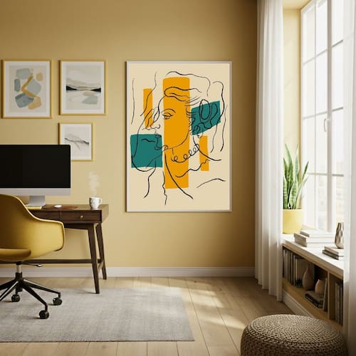 Quadro Decor Mulher Em Line Art 70x50cm Mold Branca