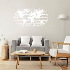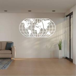 Quadro Decoração Vazado Mapa Mundi World Triplo Branc 100X51