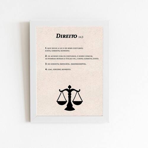 O Quadro Direito Dicionário Minimalista é perfeito para decorar os seus ambientes preferidos, como sala, quarto, escritório, garagem e espaço gourmet. Com um acabamento impecável, esse quadro com moldura vai deixar o seu ambiente ainda mais elegante.