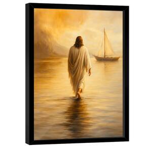 Quadro Decorativo A Caminhada de Jesus Moldura Dourada e Vidro - 180x105cm -