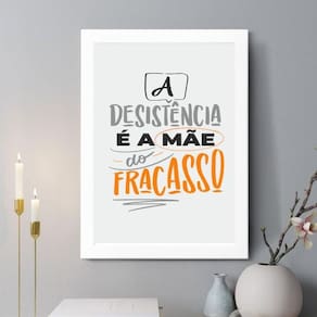 Quadro decorativo a desistência é a mãe do fracasso 24x18cm Cor: moldura preta Informações do produto tire todas as suas dúvidas no descritivo abaixo: decoração para quarto, sala, cozinha, escritório, área gourmet e muito mais. Chega de paredes vazias medidas - cada peça tem 24x18cm a5 . Material do papel - papel fotográfico brilhante de altíssima resolução acabamento - todos os quadros são acompanhados de uma película de acetato para proteção da imagem. - os quadros são embalados de forma segura com plástico bolha com camada dupla de acordo com o tamanho dos quadros. Garantia - garantia de 3 meses. Meu quadro chegou. Como posso fixá-lo Você precisa apenas de um martelo e um prego, pois os quadros já vão acompanhados de penduradores. Esta é a forma mais indicada. Caso prefira, você pode utilizar uma fita dupla face neste caso, sugerimos de alta qualidade para evitar que descole e seu quadro caia . Como posso limpar meu quadro A limpeza é feita como um móvel comum da sua casa. Apenas um pano seco ou espanador são suficientes para tal
