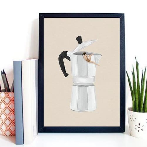 Quadro decorativo a louca do café 33x24cm - com vidro Moldura: madeira branca Informações do produto tire todas as suas dúvidas no descritivo abaixo: decoração para quarto, sala, cozinha, escritório, área gourmet e muito mais. Chega de paredes vazias medidas - cada peça tem 33x24cm a4 . Material do papel - papel fotográfico brilhante de altíssima resolução acabamento - todos os quadros são acompanhados de vidro para proteção da imagem. - moldura em madeira maciça na cor preta ou branca conforme produto escolhido e pendurador . - os quadros são embalados de forma segura com plástico bolha com camada dupla de acordo com o tamanho dos quadros. Garantia - garantia de 3 meses. Meu quadro chegou. Como posso fixá-lo Você precisa apenas de um martelo e um prego, pois os quadros já vão acompanhados de penduradores. Esta é a forma mais indicada. Como posso limpar meu quadro A limpeza é feita como um móvel comum da sua casa. Apenas um pano seco ou espanador são suficientes para tal