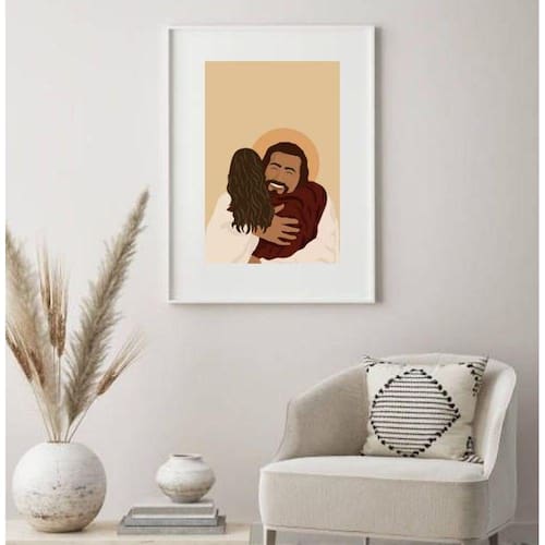 Quadro decorativo abraço de cristo - 60x48cm Moldura: madeira preta Informações do produto tire todas as suas dúvidas no descritivo abaixo: decoração para quarto, sala, cozinha, escritório, área gourmet e muito mais. Chega de paredes vazias medidas - cada peça tem 60x48cm . Material do papel - papel fotográfico brilhante de altíssima resolução acabamento - todos os quadros são acompanhados de vidro para proteção da imagem. - moldura em madeira maciça na cor preta ou branca conforme produto escolhido e pendurador. - paspatur branco com 7cm de largura - os quadros são embalados de forma segura com plástico bolha com camada dupla de acordo com o tamanho dos quadros. Garantia - garantia de 3 meses. Meu quadro chegou. Como posso fixá-lo Você precisa apenas de um martelo e um prego, pois os quadros já vão acompanhados de penduradores. Esta é a forma mais indicada. Como posso limpar meu quadro A limpeza é feita como um móvel comum da sua casa. Apenas um pano seco ou espanador são suficientes para tal Ean: 7895933660918