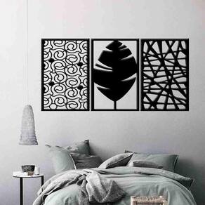 Quadro Decorativo Abstrato 3Mm Vazado - Mdf TAMANHO & INSTALAÇÃO: Tamanho total: 122cm comprimento X 60cm altura Com espaçamento recomendado de 1 cm entre peças, Peças laterais: 40x60 cm | Peça central: 40x60 cm Espaçamento entre as peças: 1 cm A instalação é bem simples, não será preciso fazer sujeira furando a parede pois utilizamos o método bem prático para instalar, contém fita dupla face 3M no verso do quadro. LIMPEZA DO PRODUTO Para limpeza, utilize apenas um pano umedecido com água sem produtos químicos para garantir a durabilidade. ACABAMENTO Nossos produtos são fabricados em MDF com espessura de 6mm cortados a laser. Desta forma terá um produto com acabamento de alta qualidade. Bordas/laterais serão na cor preta feito com a própria máquina de corte a laser, dando acabamento perfeito. GARANTIA / EMBALAGEM Embalagem reforçada e segura para que receba seu produto em perfeito estado. Garantia de produto de qualidade ou seu dinheiro de volta.