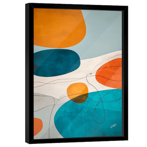 Quadro Decorativo Abstrato Cores Moldura Preta e Vidro - 118x78cm -