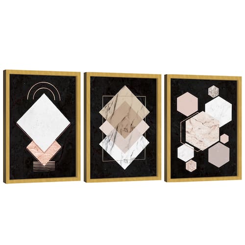 Quadro Decorativo Abstrato Formas na Cerâmica Moldura Dourada - 84x54cm -