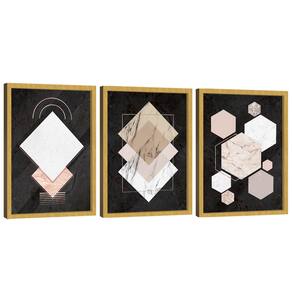 Quadro Decorativo Abstrato Formas na Cerâmica Moldura Preta e Vidro - 150x100cm -