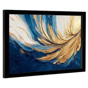 Quadro Decorativo Abstrato Munificência Azul Moldura Dourada - 180x105cm -