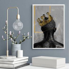 Quadro decorativo abstrato negro com coroa 45x34cm Moldura: madeira branca Informações do produto tire todas as suas dúvidas no descritivo abaixo: decoração para quarto, sala, cozinha, escritório, área gourmet e muito mais. Chega de paredes vazias. Medidas - cada peça tem 45x34cm a3 . Material do papel - papel fotográfico brilhante de altíssima resolução acabamento - todos os quadros são acompanhados de uma película de acetato para proteção da imagem. - os quadros são embalados de forma segura com plástico bolha com camada dupla de acordo com o tamanho dos quadros. Garantia - garantia de 3 meses. Meu quadro chegou. Como posso fixá-lo Você precisa apenas de um martelo e um prego, pois os quadros já vão acompanhados de penduradores. Esta é a forma mais indicada. Caso prefira, você pode utilizar uma fita dupla face neste caso, sugerimos de alta qualidade para evitar que descole e seu quadro caia . Como posso limpar meu quadro A limpeza é feita como um móvel comum da sua casa. Apenas um pano seco ou espanador são suficientes para tal