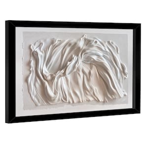 Quadro Decorativo Abstrato Tecido Branco Moldura Preta e Vidro - 118x78cm -