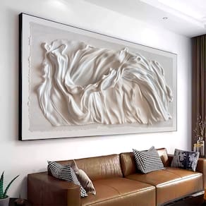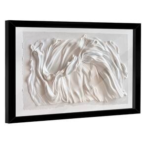 Quadro Decorativo Abstrato Tecido Branco Moldura Branca - 84x54cm -