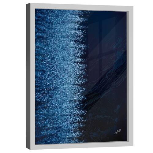 Quadro Decorativo Abstrato Tons de Azul Moldura Branca e Vidro - 60x40cm -