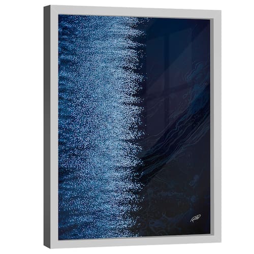 Quadro Decorativo Abstrato Tons de Azul Moldura Branca e Vidro - 84x54cm -