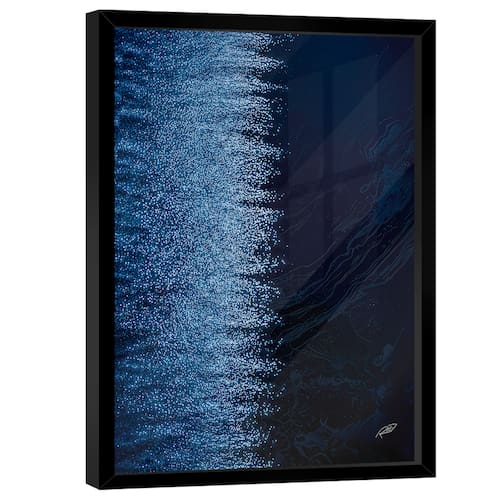 Quadro Decorativo Abstrato Tons de Azul Moldura Preta e Vidro - 60x40cm -