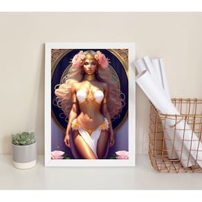 Quadro decorativo afrodite- arquétipo 45x34cm - com vidro Moldura: madeira preta Informações do produto tire todas as suas dúvidas no descritivo abaixo: decoração para quarto, sala, cozinha, escritório, área gourmet e muito mais. Chega de paredes vazias medidas - cada peça tem 45x34cm a3 . Material do papel - papel fotográfico brilhante de altíssima resolução acabamento - todos os quadros são acompanhados de vidro para proteção da imagem. - moldura em madeira maciça na cor preta ou branca conforme produto escolhido e pendurador . - os quadros são embalados de forma segura com plástico bolha com camada dupla de acordo com o tamanho dos quadros. Garantia - garantia de 3 meses. Meu quadro chegou. Como posso fixá-lo Você precisa apenas de um martelo e um prego, pois os quadros já vão acompanhados de penduradores. Esta é a forma mais indicada. Como posso limpar meu quadro A limpeza é feita como um móvel comum da sua casa. Apenas um pano seco ou espanador são suficientes para tal Ean: 7898094911707