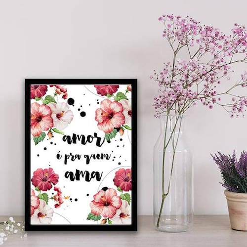 Quadro Decorativo Amor é Pra Quem Ama - Tamanho: A4 (20 x 30) / Acabamento: Película de acetato / Moldura: Madeira preta
