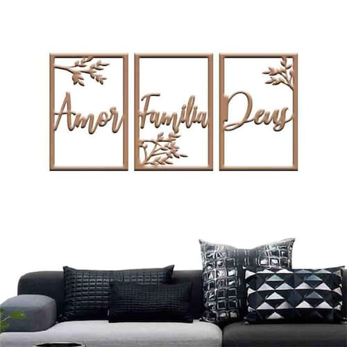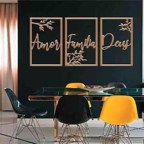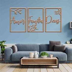 Quadro decorativo amor, família e deus - mdf 3mm Cor: preto Tamanho & instalação: