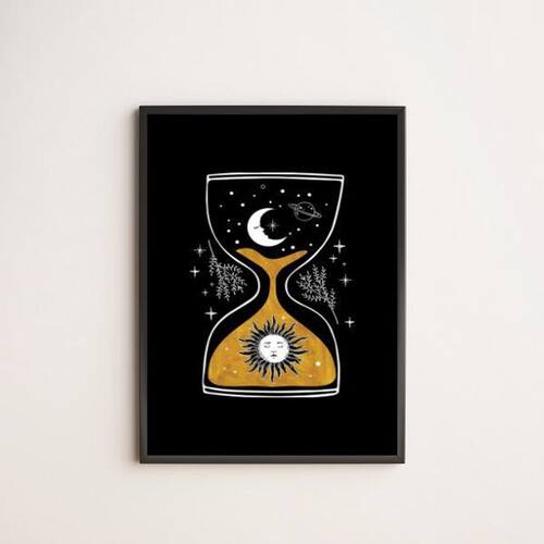 Quadro decorativo ampulheta universo 24x18cm Moldura: madeira preta Informações do produto tire todas as suas dúvidas no descritivo abaixo: decoração para quarto, sala, cozinha, escritório, área gourmet e muito mais. Chega de paredes vazias medidas - cada peça tem 24x18cm a5 . Material do papel - papel fotográfico brilhante de altíssima resolução acabamento - todos os quadros são acompanhados de uma película de acetato para proteção da imagem. - moldura em madeira maciça na cor branca e pendurador móvel que pode ser retirado facilmente caso deseje fixar com fita dupla face. - os quadros são embalados de forma segura com plástico bolha com camada dupla de acordo com o tamanho dos quadros. Garantia - garantia de 3 meses prazo de envio pedimos 24 horas úteis no máximo para enviar seu pedido após o envio, segue os prazos normais dos correios, cerca de 7 dias úteis exceto para norte e nordeste, que pode ser de até 14 dias úteis. Em diversas cidades, este prazo normalmente é reduzido, mas depende do prazo dos correios. Meu quadro chegou. Como posso fixá-lo Você precisa apenas de um martelo e um prego, pois os quadros já vão acompanhados de penduradores. Esta é a forma mais indicada. Caso prefira, você pode utilizar uma fita dupla face neste caso, sugerimos de alta qualidade para evitar que descole e seu quadro caia . Como posso limpar meu quadro A limpeza é feita como um móvel comum da sua casa. Apenas um pano seco ou espanador são suficientes para tal Ean: 7892091092681