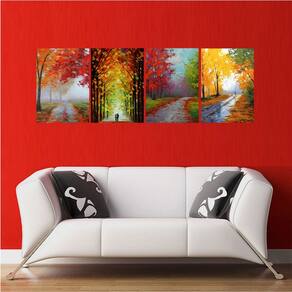 Características: - Quadro decorativo sem moldura - Composto por 4 Peças - Impresso tecido sintético com textura similar ao canvas e superfície semi-brilho - Você pode fixar com pregos de aço, parafusos e bucha, dupla face e cola quente