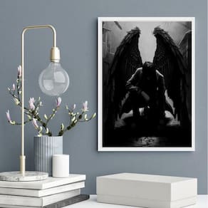 Quadro decorativo anjo negro 33x24cm - com vidro Moldura: madeira branca Informações do produto tire todas as suas dúvidas no descritivo abaixo: decoração para quarto, sala, cozinha, escritório, área gourmet e muito mais. Chega de paredes vazias medidas - cada peça tem 33x24cm a4 . Material do papel - papel fotográfico brilhante de altíssima resolução acabamento - todos os quadros são acompanhados de vidro para proteção da imagem. - moldura em madeira maciça na cor preta ou branca conforme produto escolhido e pendurador . - os quadros são embalados de forma segura com plástico bolha com camada dupla de acordo com o tamanho dos quadros. Garantia - garantia de 3 meses. Meu quadro chegou. Como posso fixá-lo Você precisa apenas de um martelo e um prego, pois os quadros já vão acompanhados de penduradores. Esta é a forma mais indicada. Como posso limpar meu quadro A limpeza é feita como um móvel comum da sua casa. Apenas um pano seco ou espanador são suficientes para tal