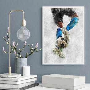 Quadro decorativo aquarela futebol- azul 45x34cm - com vidro Moldura: madeira preta Informações do produto tire todas as suas dúvidas no descritivo abaixo: decoração para quarto, sala, cozinha, escritório, área gourmet e muito mais. Chega de paredes vazias medidas - cada peça tem 45x34cm a3 . Material do papel - papel fotográfico brilhante de altíssima resolução acabamento - todos os quadros são acompanhados de vidro para proteção da imagem. - moldura em madeira maciça na cor preta ou branca conforme produto escolhido e pendurador . - os quadros são embalados de forma segura com plástico bolha com camada dupla de acordo com o tamanho dos quadros. Garantia - garantia de 3 meses. Meu quadro chegou. Como posso fixá-lo Você precisa apenas de um martelo e um prego, pois os quadros já vão acompanhados de penduradores. Esta é a forma mais indicada. Como posso limpar meu quadro A limpeza é feita como um móvel comum da sua casa. Apenas um pano seco ou espanador são suficientes para tal Ean: 7896595603763