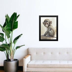 Quadro decorativo aquarela macaquinho 24x18cm - com vidro