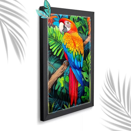 Quadro Decorativo Arara Macau + Vidro 33x25 Sala Quarto - Cor: Preto
